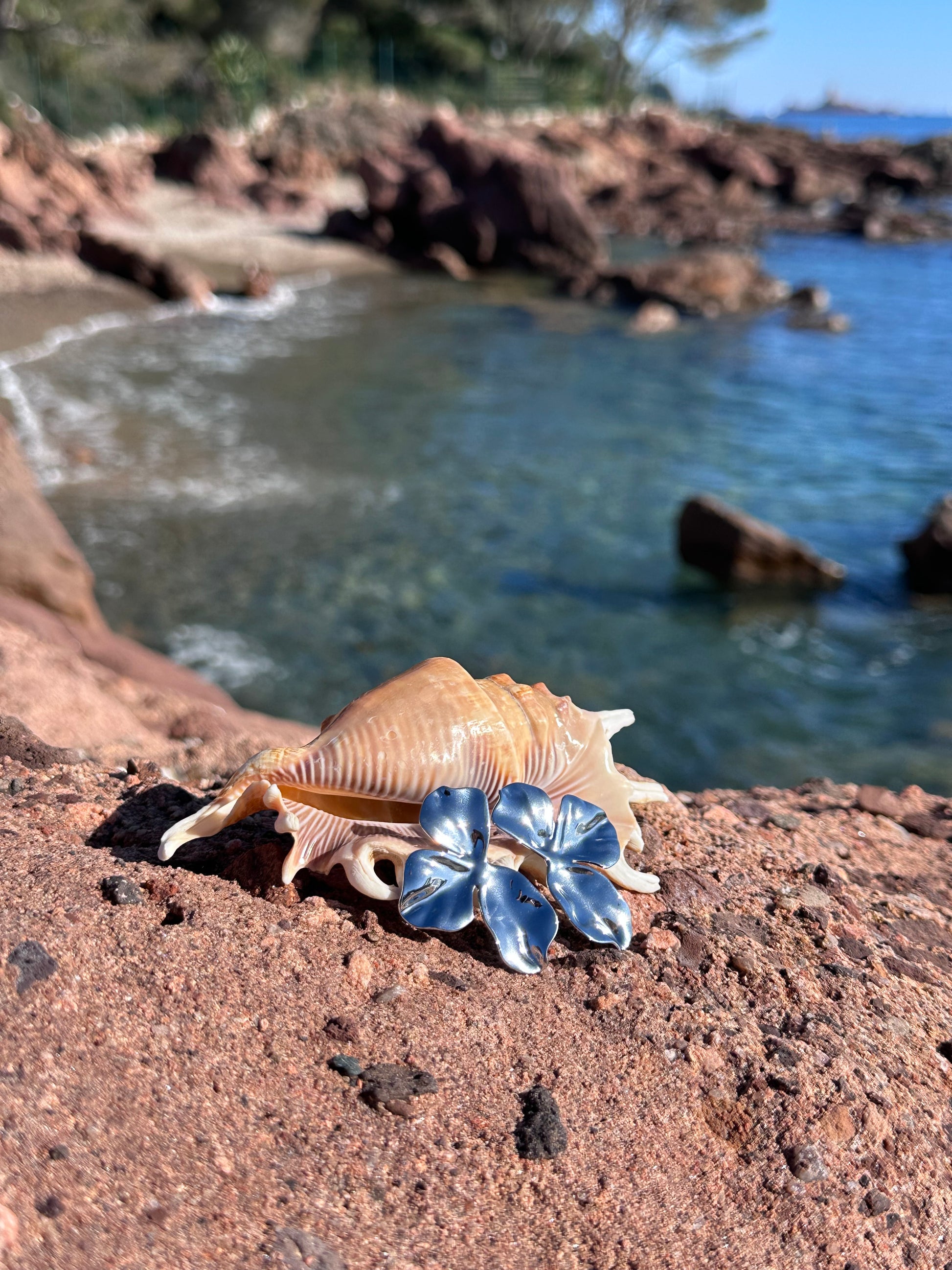 Boucles d’oreilles argenté pétales ondulées - Acier Inoxydable